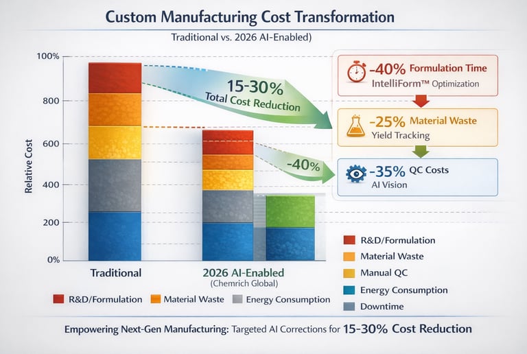 The transition to a lower-cost manufacturing model at Chemrich Global is facilitated by targeting the "biggest leaks" in the production lifecycle: scrap, downtime, and inefficient scheduling.2 By applying machine learning to these specific areas, the company achieves measurable returns within months rather than years.2